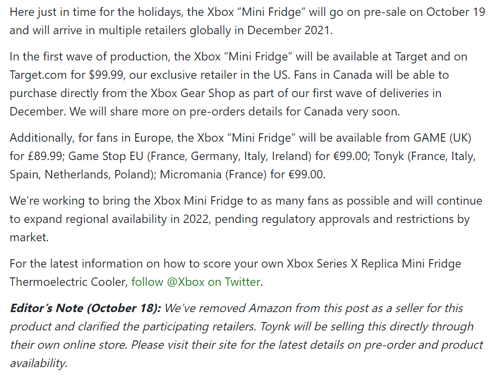 Xbox Mini Fridge Pre Order / 7fb Zcujevjcsm - It now has to deliver on its promise.. Preorder status info at retailers including microsoft store, amazon, best buy, gamestop, walmart, target, sam's club and newegg. After xbox triumphs in a twitter poll, a microsoft executive has promised to put the mini fridges into production. Get galaxy s21 ultra 5g with unlimited plan! Xbox participated in a brand battle on twitter and promised to make xbox series x mini fridges if it won. It now has to deliver on its promise.